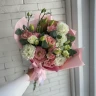 Этот букет сочетает в себе величие кустовых и одноловых роз с изяществом эустомы и лизиантусов, создавая симфонию красоты и грации. Упакованный в нежную крафтовую бумагу, он передает утонченность. Идеален для особых случаев, когда требуется изысканный и запоминающийся жест.